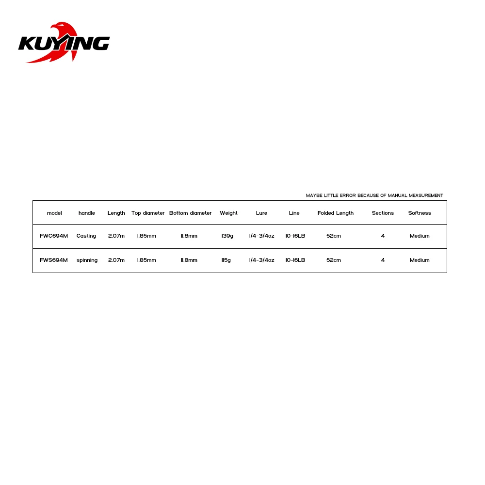 Gift Idea - KUYING FREESTYLE WALKER 2.07m 6'9" Baitcasting Casting Spinning Fishing Lure Rod M Medium Stick Cane Pole Stick FUJI parts